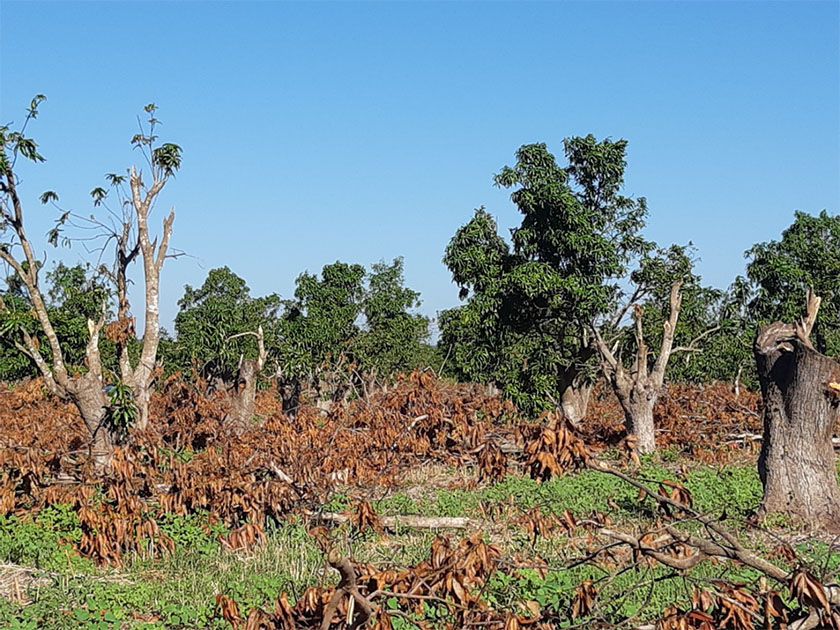 Gran parte de las plantaciones de mango del municipio de Escuinapa sufrieron daños de medianos a severos, por lo que los productores están realizando acciones para recuperar las huertas. En la plática que fue impartida por el Ing. Juan Alberto Santoyo Juárez, técnico de Fundación Produce Sinaloa en el sur del estado, hizo hincapié en las acciones que se deben implementar para recuperar los árboles dañados por el huracán, se indicó, dependiendo del daño de los árboles, los tres tipos de podas que se deben implementar: Descope, Poda de esqueleto y Poda Gradual. En el primer tipo de poda se debe eliminar por completo la copa en aquellos árboles que fueron severamente dañados, una vez realizada esta actividad se debe sellar los cortes con pintura vinílica, pasta de cobre más cal o arbolsan. En la poda esqueleto se podaran todas las ramas, dejando solo las ramas primarias; es decir, la estructura principal del árbol. La poda gradual se recomienda realizarla en aquellos árboles que conservan al menos media copa. Los productores asistentes externaron su dudas, las cuales fueron resueltas por el especialista asistente.