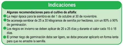 Una de las alternativas para resolver el problema de la escasez de forraje es la de incorporar a las tierras de riego el cultivo de alfalfa, como una opción para diversificar los cultivos y hacer eficiente su uso durante todo el año.