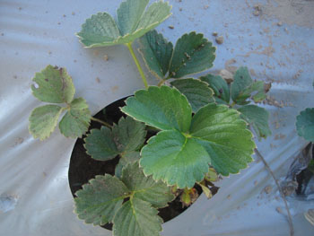 A un mes de haber realizado el trasplante, las plantas de las variedades Camino Real y Albión presentan buenas características de desarrollo.El cultivo de fresa (Fragaria sp.) encuentra las mejores condiciones climáticas para su desarrollo en los climas templados, es decir, temperaturas que van desde 5 hasta 25oC y, en ciertas etapas de desarrollo, requiere temperaturas especificas para iniciar su floración.