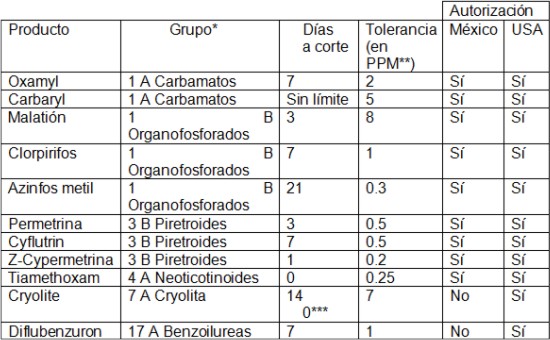 Cuadro 1. Insecticidas autorizados para el control del picudo del chile en México y Estados Unidos.