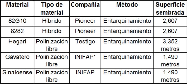 Cuadro 2. Materiales de sorgo establecidos con entarquinamiento en Bacamacari, Mocorito, con siembra en julio de 2009.
