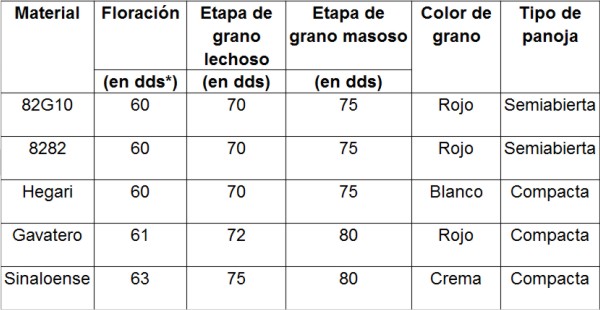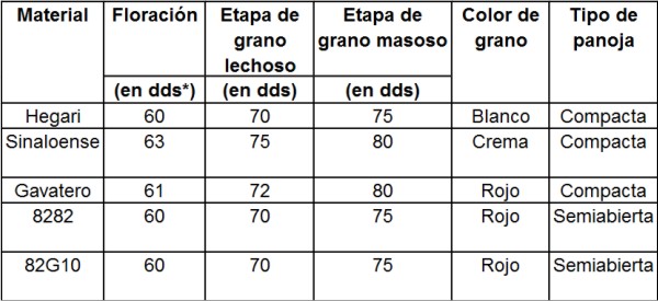 Cuadro 5. Desarrollo fenológico de cada material de sorgo de sorgo en el lote testigo, de julio a septiembre de 2009.