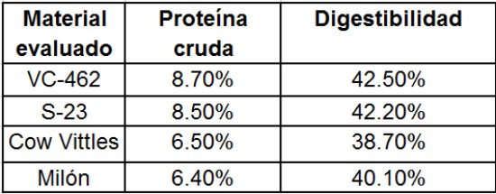 En calidad nutritiva, las variedades validadas obtuvieron en promedio 8.6% de proteína cruda y 42.4% de ?digestibilidad? (?porcentaje aprovechable del forraje consumido por un rumiante?), mientras que los testigos presentaron 6.4% de proteína cruda y 39.4% de digestibilidad. Ver Cuadro 2.
