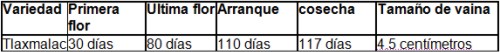 Cuadro 2. Características fenológicas de la variedad de cacahuate establecida con el paquete tecnológico para alta productividad de cacahuate.
