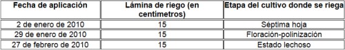 Cuadro 1. Riegos de auxilio aplicados al cultivo de maíz validado.