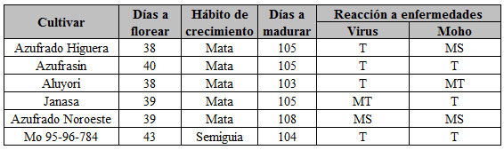 Cuadro 1. Características agronómicas de los nuevos genotipos de frijol para el norte de Sinaloa (Campo Experimental Valle del Fuerte, 2011).