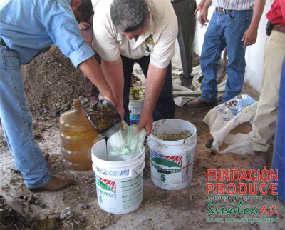 Los productos o subproductos utilizados para la elaboración pueden ser residuos de cosecha, estiércol, suero de leche, melaza, cenizas, minerales, agua, etcétera. En esta ocasión se mostró a los asistentes la manera de cómo preparar un fertilizante líquido (supermagro) y un abono sólido (bocashi). Fue tanto el interés de los asistentes, que solicitaron se les capacite también en la elaboración de productos orgánicos para la prevención de plagas y enfermedades en mango.