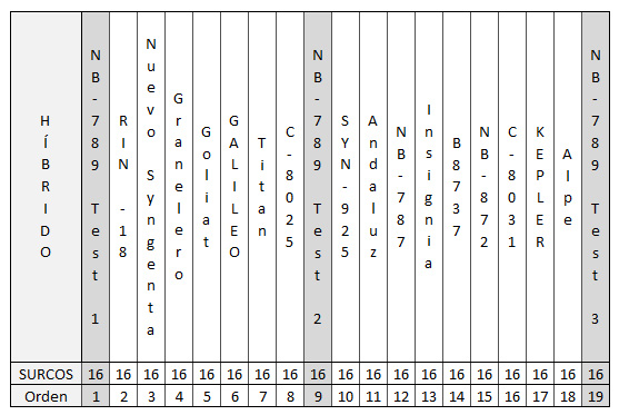 El diseño del lote quedo establecido en el siguiente orden: